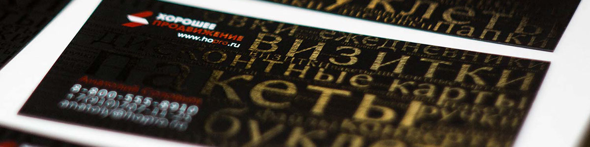 Мы внимательно изучим ваше техзадание (а до этого, на любом этапе ответим на любой вопрос, связанный с той или иной технологией печати визиток, позвоните нам бесплатно на 8-800-555-8910), согласуем стоимость и в минимальные сроки изготовим ваши визитки. Компания "Хорошее продвижение" обладает собственным современным оборудованием по шелкографии. Опытные и ответственные печатники не допустят брак до ваших глаз. А если ваша визитка должна быть отпечатана офсетом, мы изготовим ее на производственной базе наших проверенных партнеров. Обещаем, в обоих случаях стоимость визиток не испортит вам настроения.